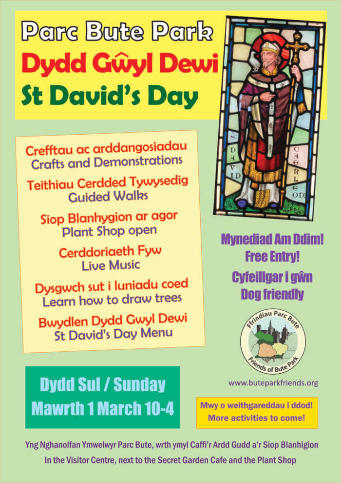 Dathlwch Ddydd Gŵyl Dewi yng nghanol Caerdydd gyda Chyfeillion Parc Bute.
